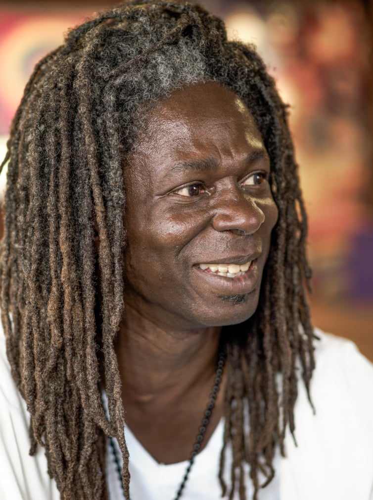 Jamaica, Darrell is as warm and steady as the sun, loved and trusted by animals, babies, and small children. An engineer, High Priest and nature lover, he draws inspiration from the world around him and from deep within.